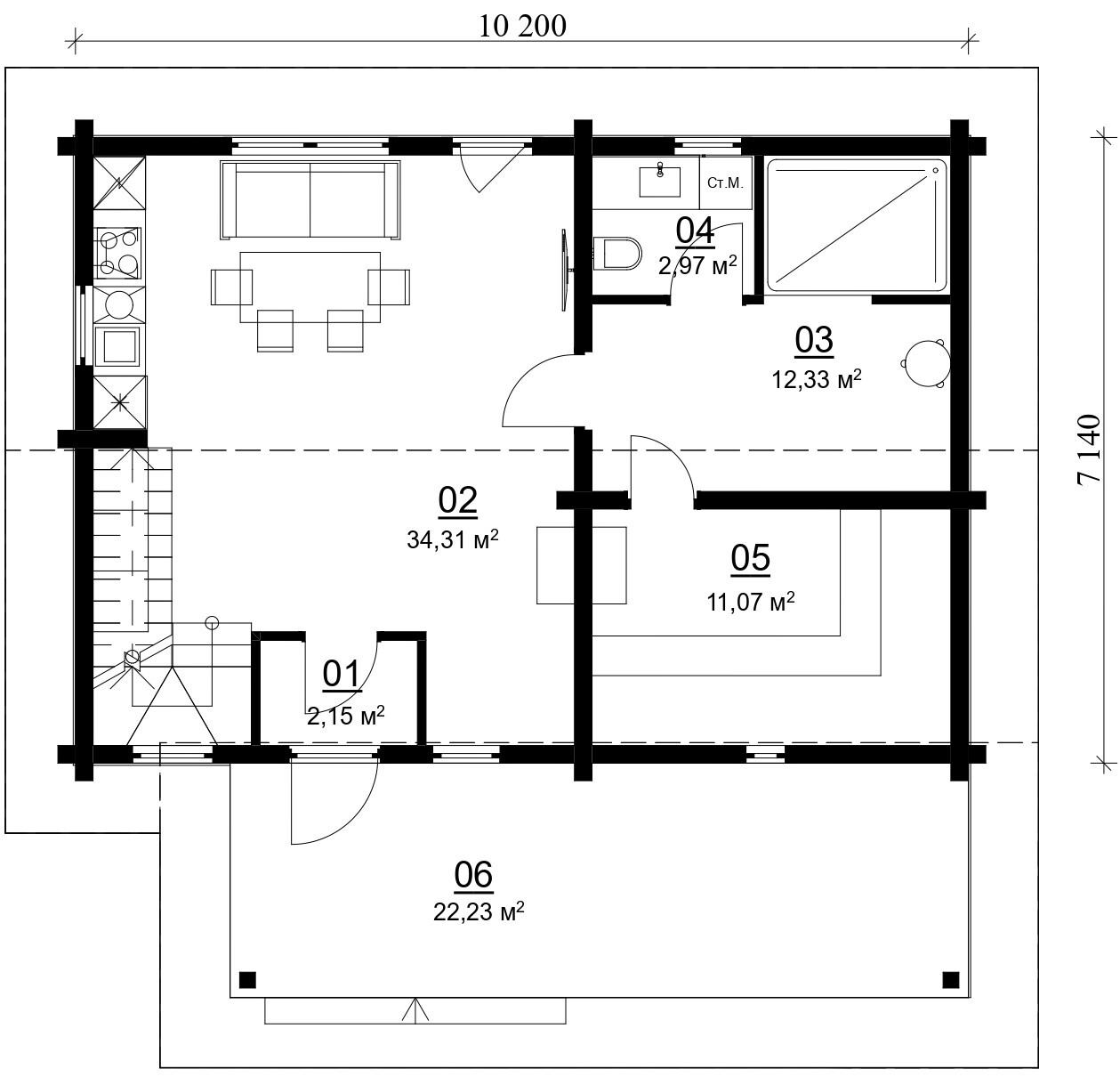 Двухэтажный дом с баней 109 м² из клееного бруса — комфортное решение для загородной жизни. Просторная терраса для отдыха, уютная кухня-гостиная, большая комната отдыха, спальня, парная и моечная создают атмосферу уюта и расслабления. Экологичность и стиль в одном проекте!